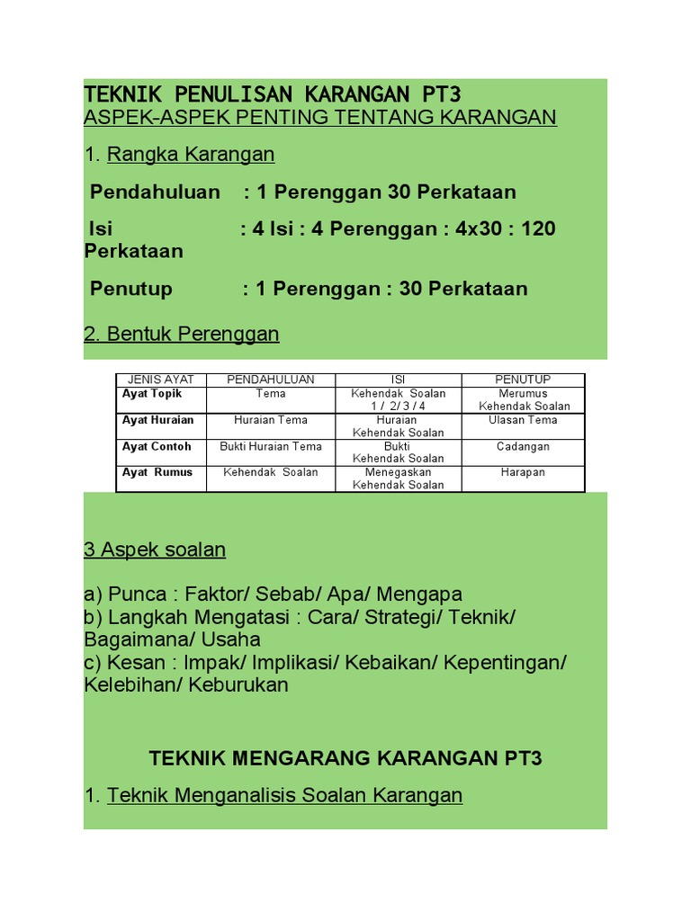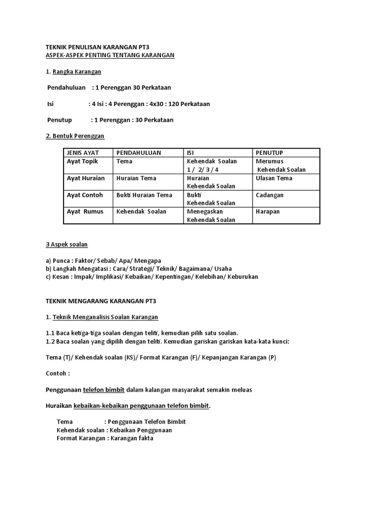 12 Baca soalan yang dipilih dengan teliti. Koleksi Karangan Bahasa Melayu PT3. Baca versi flipbook dari Teknik Penulisan Karangan PT3.